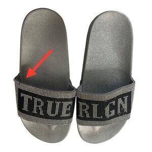 True Religion Crystal Embellished Rhinestone Jasmin Bling Slides Slip On Sandals