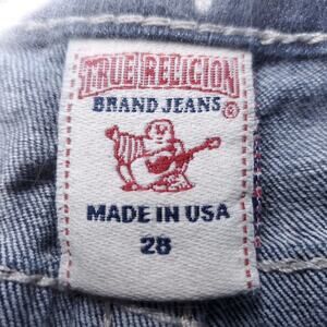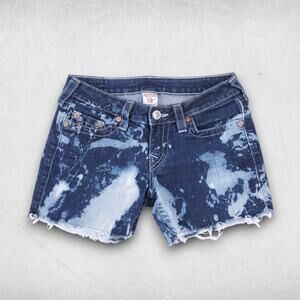 True Religion Cutoff Denim Shorts Womens 28 Dark Blue Bleach Raw Hem Y2K Trendy