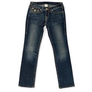 Notes: Classic True Religion styling with bold stitching and embellished hardware