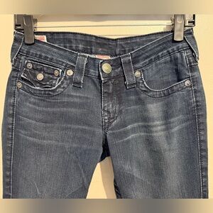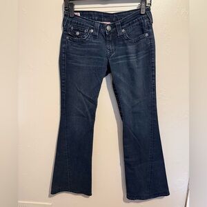 True Religion Dark Blue Flare Jeans Size 27 Y2K Retro Vintage Classic Pockets