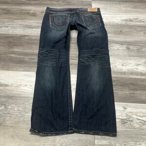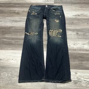 True Religion Dark Faded Blue Mens 38 Distressed Straight Jeans Cybergrunge Y2K