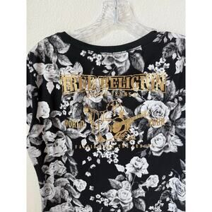 True Religion Dark Floral Foil Classic Rounded V-Neck Tee Size XL