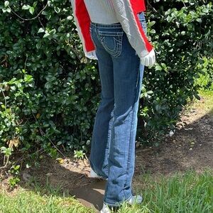 True Religion Dark Wash Low Rise Flare Leg Jeans