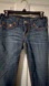 Stylish dark wash jeans by True Religion. Features signature stitching and durable fabric. Ideal for everyday wear.
