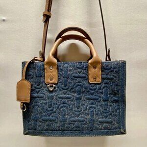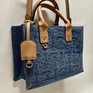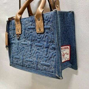 True Religion Denim Horseshoe Quilted Tote Blue Crossbody Bag Y2K Handbag EUC