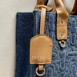 True Religion Women’s Quilted Horseshoe Tote Blue Denim Crossbody Bag Y2K EUC