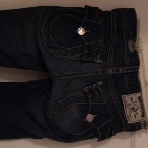 These jeans are used have been worn in and they are in very good condition there are no flaws or holes on them they are size 29 and they have a very large pocket detail in the back. As far as the bottom leg -slightly tapered but they’re not those tight stretchy skinny Jean type they have a higher waist. I do not except any refunds or returns all of my sales are final So please make sure that you’re buying what you are sure of if it doesn’t fit it’s not my problem no returns