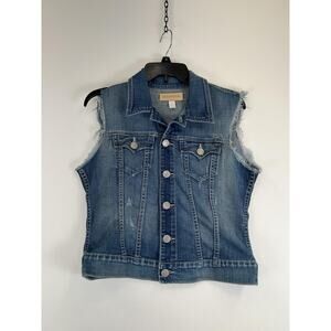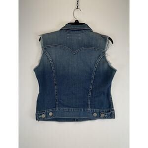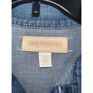 True Religion Denim Vest Womens Small Shelby Distressed Frayed Sleeveless Jacket