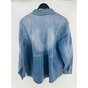 True Religion Denim Western Shirt Light Wash Long Sleeve Button Up Size L