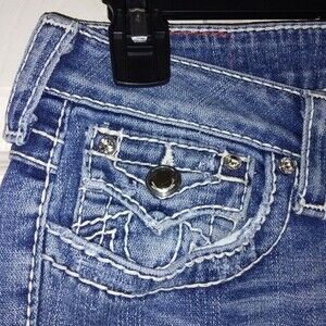 True Religion Disco Joey Big T Flare blue jeans with crystals size 27 flap pocket