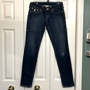 True Religion Disco Julie Big T Dark Denim Sequins Horseshoe Embellished Jeans