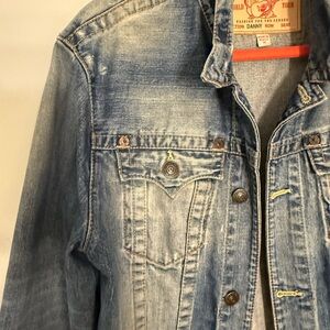 True Religion Men’s medium (UNISEX) distressed denim jacket. Mint condition.