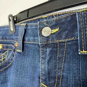 True Religion Flap Pocket Bootcut Jeans Size 32 Made in USA Dark Wash Classic