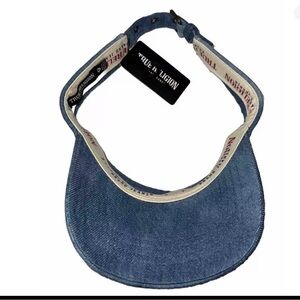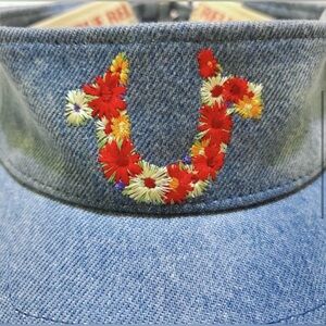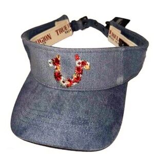 True Religion Floral Logo blue Denim Adjustable Sun Visor Hat new