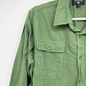 True Religion Forest Green Long Sleeve Utility Button Up Shirt Men's L