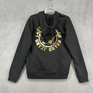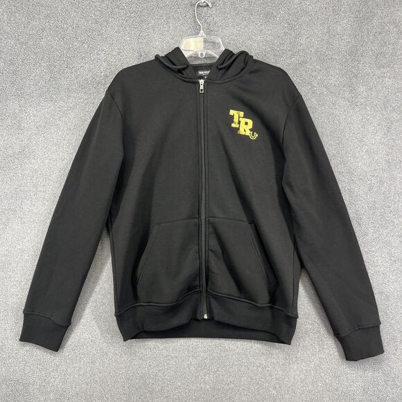 True Religion Full Zip Hoodie Mens Medium Black Gold Big logo Sweatshirt