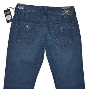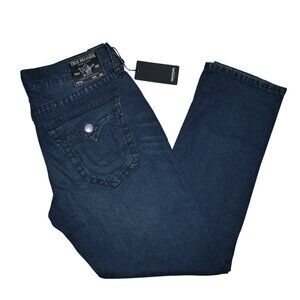 True Religion Geno Big T Flap Jeans Men's Size 36x32 Super Dark Wash Denim NWT