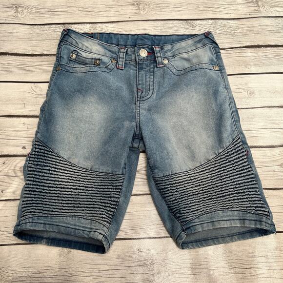 True Religion Geno Relaxed Slim Moto Mens Blue Denim Shorts Size 16