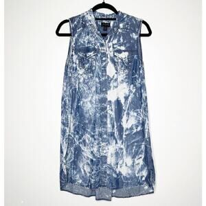 True Religion Georgia Chambray Button Down Dress Women's Blue White Small Petite