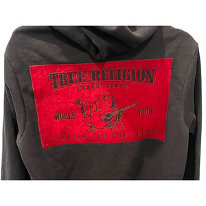 True Religion Graphic Logo Black Red Hoodie Size Medium Casual Full Zip Jacket