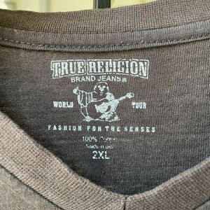 True Religion Grey Slim Fit Buddy Logo Vneck Long Sleeve Tshirt 2XL