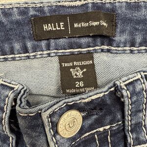 True Religion Halle Jeans Women 26 Mid Rise Super Skinny Medium Wash Distressed