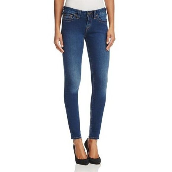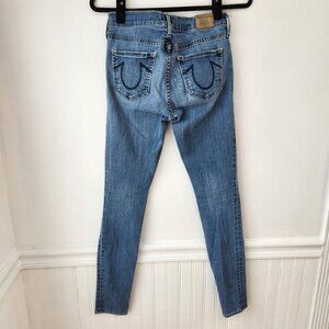 True Religion Halle Mid Rise Skinny Medium Wash Stretch Denim Jeans Women's 27