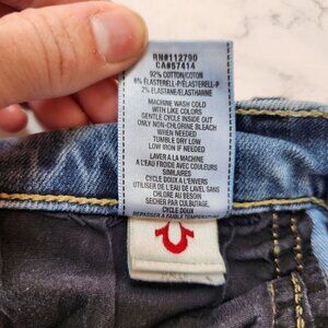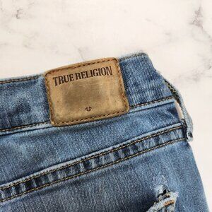 These True Religion denim jeans are a classic skinny style and right on trend! They feature a medium wash, distressing, and have a comfortable stretch. Made in USA!