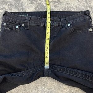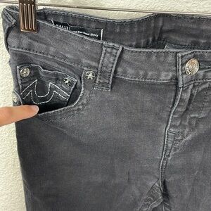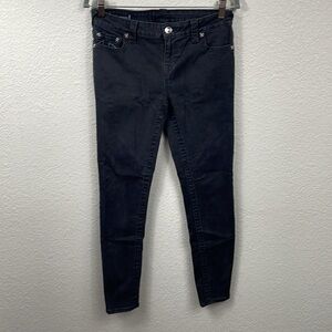 True Religion Halle Mid Rise Super Skinny Jeans Black Wash Horseshoe Stitch 29