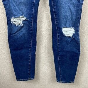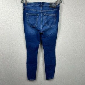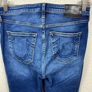 True Religion Halle Mid Rise Super Skinny Jeans Medium Dark Wash Distressed 29
