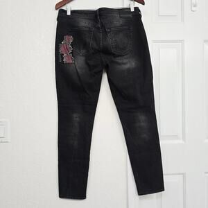 True Religion Halle Mid-Rise Skinny Jeans Skull Patch Black Rinse Wash Size 29