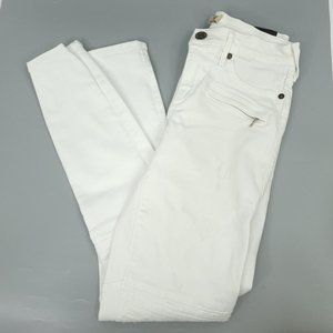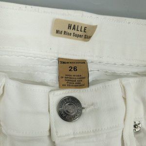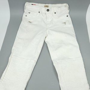 True Religion Halle Moto Jeans Size 26 Mid Rise Super Skinny White Distressed