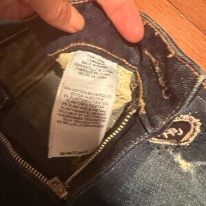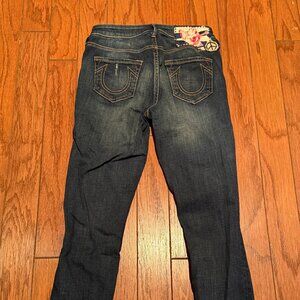 True Religion Halle Super Skinny Buddha Peace Theme Jeans Dark Wash Size 25