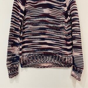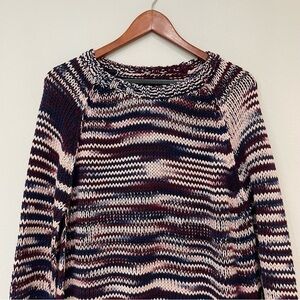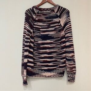 Relaxed fit pullover. Round neckline Long sleeves Item fits true to size. Multicolored loose knit Fabric: 100% cotton. Ribbed trim at cuff, collar, and hem. Excellent used condition.