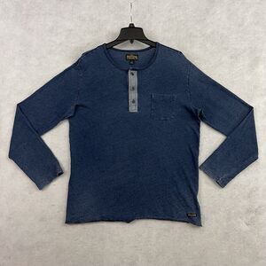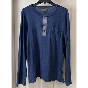 True Religion Henley Shirt Mens XL Blue Long Sleeve Pocket Long Sleeve
