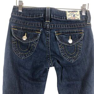 True Religion Women's High Rise Boot Jeans Flap Pockets Modified Hem