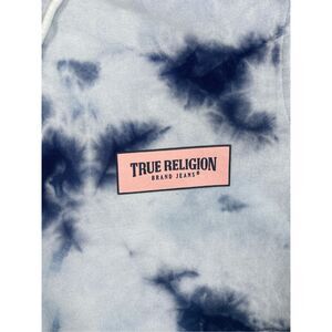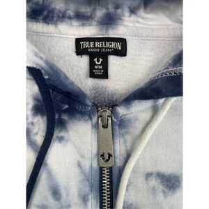 True Religion Hoodie Men M Blue Tie Dye Zip Up Streetwear Lounge Core Y2K Style