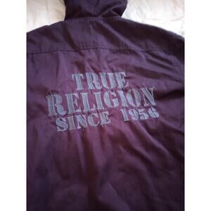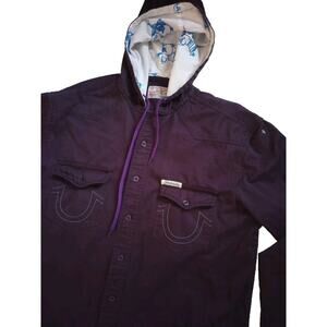 Vtg True Religion Shirt Mens XL Purple Long Sleeve Hooded Button Up Embroidered. In great pre-owned condition. There is a bleach spot on the underside of the cuff of the sleeve as you can see in the last picture above.