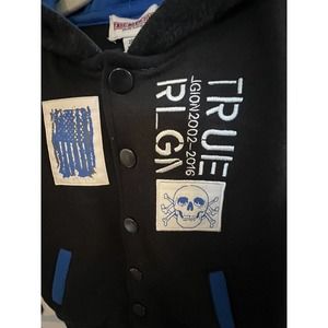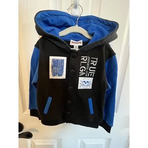 True Religion Hoodie Sweatshirt Jacket Toddler 24 Month 2T Blue Black Varsity