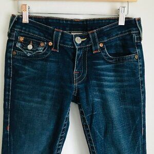 True Religion JOEY Flare Raw Hem Jeans Size 27