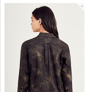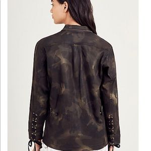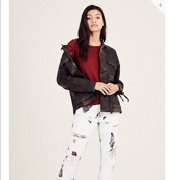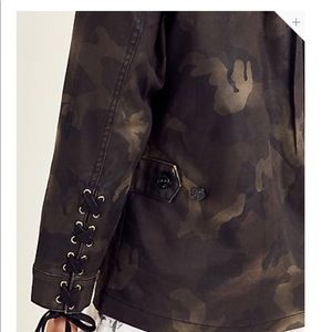 True Religion Dark Coated Camouflage Field jacket 🧥, Lace up details on the arm, sz Large ...