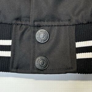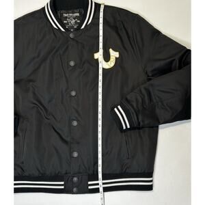 True Religion Jacket Mens 2XL Button Snap Satin Bomber Black Horseshoe Logo