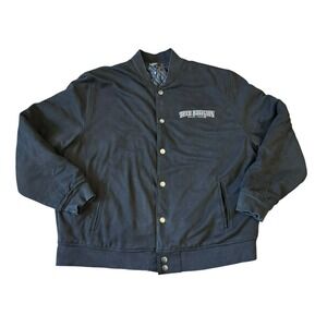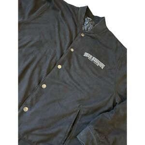 True Religion Jacket Mens 2XL Jet Black Arch Suede Bomber Button Designer Retro Excellent Condition