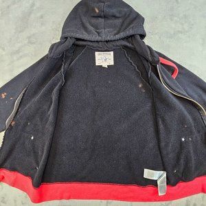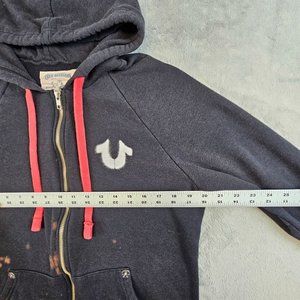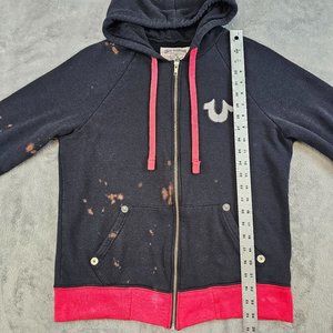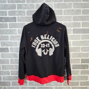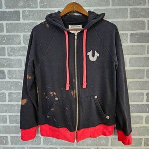 True Religion Jacket Women's Large Black Red Bleach Splatter Distressed Logo