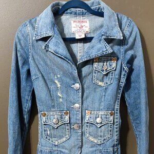 True Religion Jackie Big T Denim Jacket Women Size XS