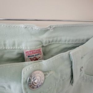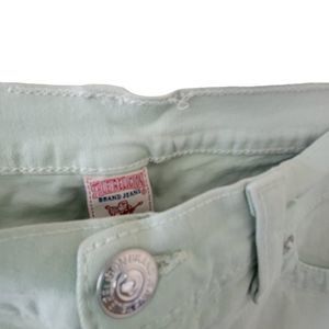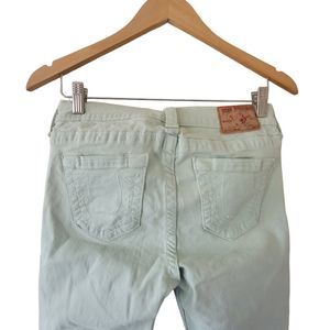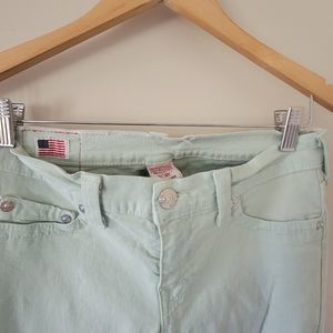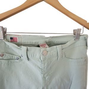 True Religion Jeans Womens 30 Halle Super Skinny Mint Green Some of the stitches are snagged as shown in photo