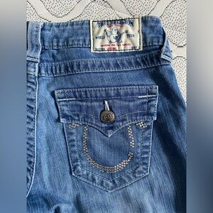 True Religion Jean Legging Flap Pockets Rhinestone Logo Size 28