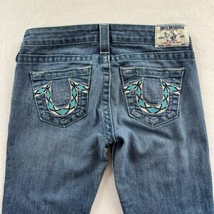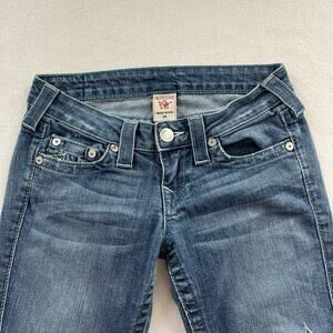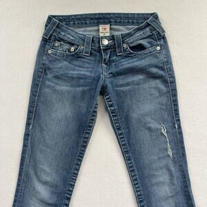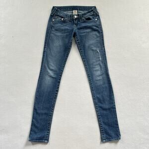 True Religion Jean Medium Wash Distressed Stretch Skinny Stretch Low Rise USA 26