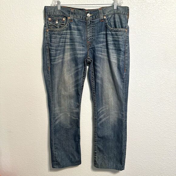 True Religion Jeans 38x30 Straight with Flaps Dark Wash Denim Blue