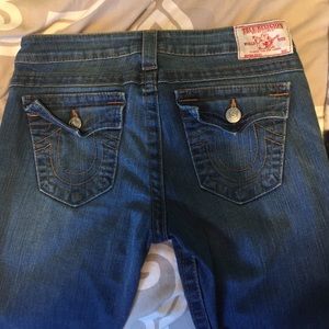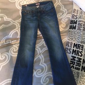 Barely worn, size women 28, no holes or rips, blue jeans boot cut